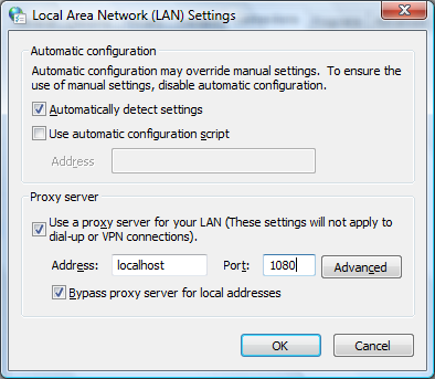 This is a pretty useful workaround and should work for other software that use the Internet Options connection settings, but do not support an authenticated proxy.